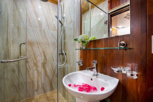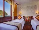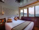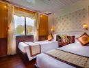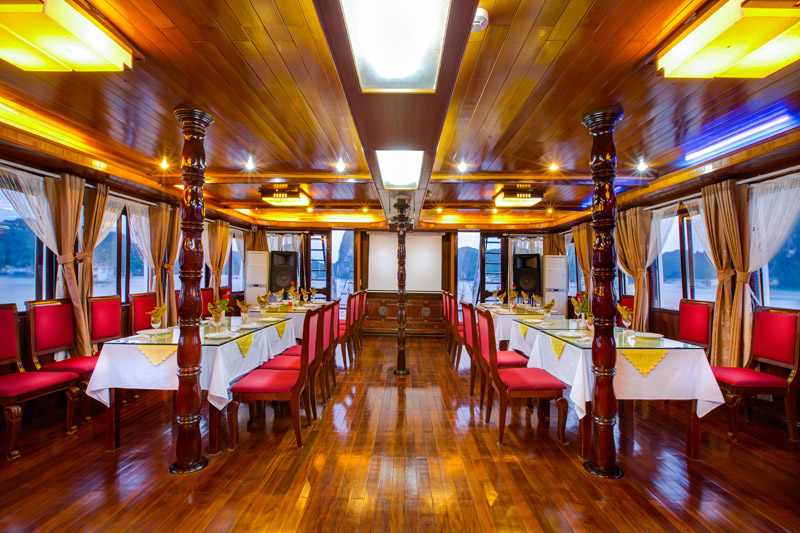 Halong Golden Lotus Garden Cruise features 12 cabins, restaurant - bar, sundeck. The cabin were designed on a combination of traditional and luxury. All rooms are especially designed with big windows open to the sea so you can see panoramic view of a bay.