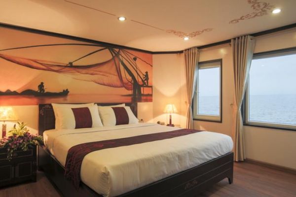 There are 26 luxurious cabins of Huong Hai Sealife Cruise, and all cabins of this cruise with private balcony from Suite cabin to Executive cabins.