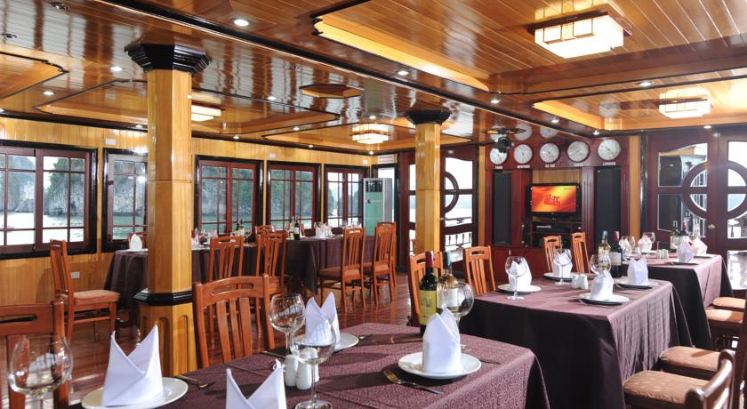 The restaurant on board serves traditional Vietnamese dishes. Choose from the set menu, which consists of local seafood, beef, chicken and spices.