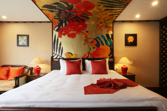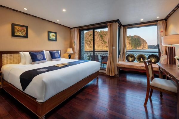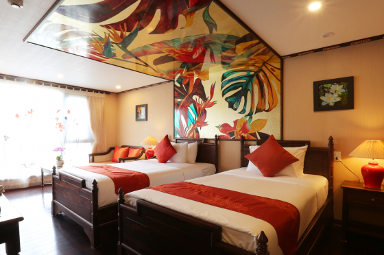 This cruise has 36 elegant and comfortable suites with large private balconies overlooking the spectacular views of the bay. Moreover, the ship is created with the highest level of international standards, ensuring optimum comfort and safety. Indochine Cruise features a dining room, bar, rooftop sundeck, fully furnished cabins. Spa services and Jacuzzi pools are also available. Together with professional and friendly staff, Indochine Cruise promises to bring unforgettable memories to each.