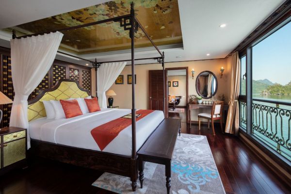 Indochine Cruise visit Lan Ha Bay and a part of Halong Bay, it is a 5* new mental boat built-in 2019. It was created with a combination of contemporary luxury with traditional Indochinese maritime heritage. Additionally, Indochine Cruise is equipped with a luxurious interior and exterior décors such as the quaint wooden furnishings, exquisitely sculpted patterns, and fabulous wall décor evoking the colonial period of Vietnam