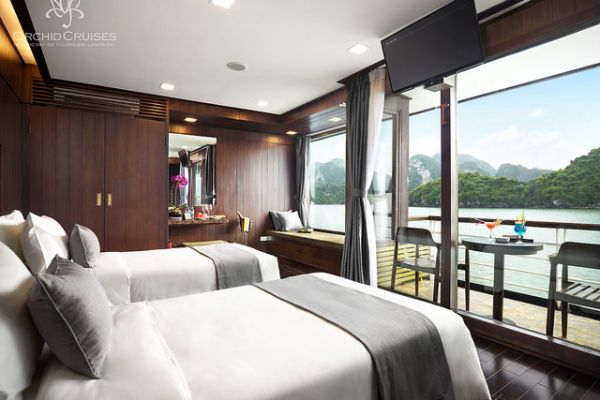 As the first 5-star quality cruise to explore both Halong Bay and Lan Ha Bay, Orchid Classic remains a timeless inspiration thanks to its classic Indochine architecture combined with all-wooden interiors. Consisting of 14 spacious suites with balconies and private baths overlooking the gulf, an outdoor jacuzzi on sundeck, Orchid Classic with 5-star services guarantees clients an extraordinary experience in discovering the mysterious beauty of the bays.