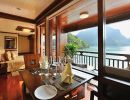 Paradise Peak dining and drinking are an exclusive. We have created our first on board A la carte menu for you to choose according to your tastes and desires among a selection of refined dishes artistically blending Vietnamese flavours and international delicacies. A list of the finest vintages in the world together with an exquisite array of cocktails and beverages will accompany your meals and be available any time thanks to an in-cabin service. Located on the third deck, the lavish restaurant is surrounded by large windows for you not to miss anything of the nature performance unfolding around you as the boat sails through the bay. It can host up to 16 people and meals can also be arranged to be taken outdoors. For a complete private experience, breakfast, lunch and dinner can be served in your suite, by the window or on your private balcony. And the fantastic Paradise dining touch: a lavish barbecue will be arranged on the Sundeck for dinner. All meals are concocted with fresh local products in a roomy kitchen located in the second deck.