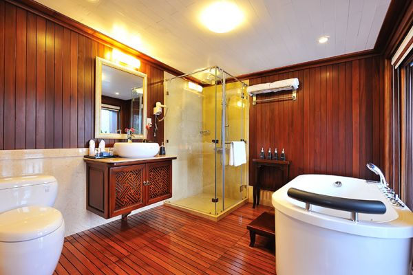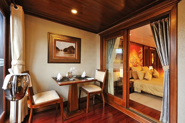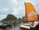| Launch Ratings Total Length Total Width Total Height Outfit Capacity Number of Decks Operating Area | January 2012 ***** 41,5m 9m 11,5m Traditional Vietnamese Wooden Junk 16 passengers per boat 4 decks Halong Bay, Vietnam |