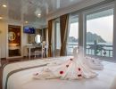 There are 17 luxurious cabins of this beautiful cruise but almost balcony cabins are located on second floor, you can book Senior cabins, Family cabins on second floor. Junior cabins are located at 1st floor without balcony but these cabins are also modern and got big window.