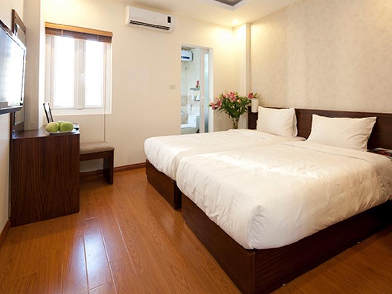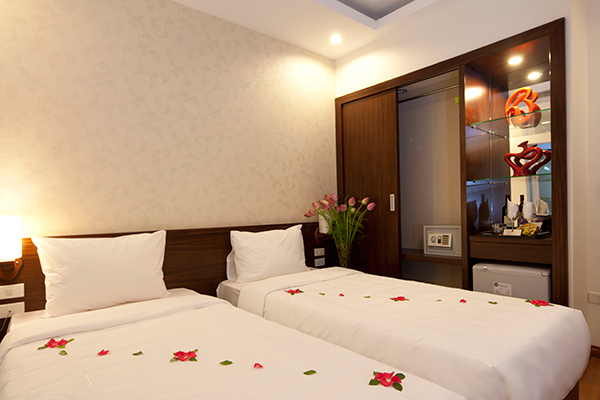 Accessed by Elevator, the rooms system are decorated gracefully, included : Air-conditioner, satellite TV, mini bar, high speed internet – wifi with free laptop use, safe box, …..make you a pleasant, comfortable staying as in your sweet home. With the ideal location of the biggest capital’s finance, cultural center, next to international banks, super market, Literature temple, Ho Chi Minh mausoleum, Great theatre, Water puppet show theatre…. It takes you only 2 minute on foot to Hoan Kiem Lake, fully satisfied to discover, to go shopping in the Old – Quarter. Our editorial staffs are all professional, enthusiasm and full of hospitality.