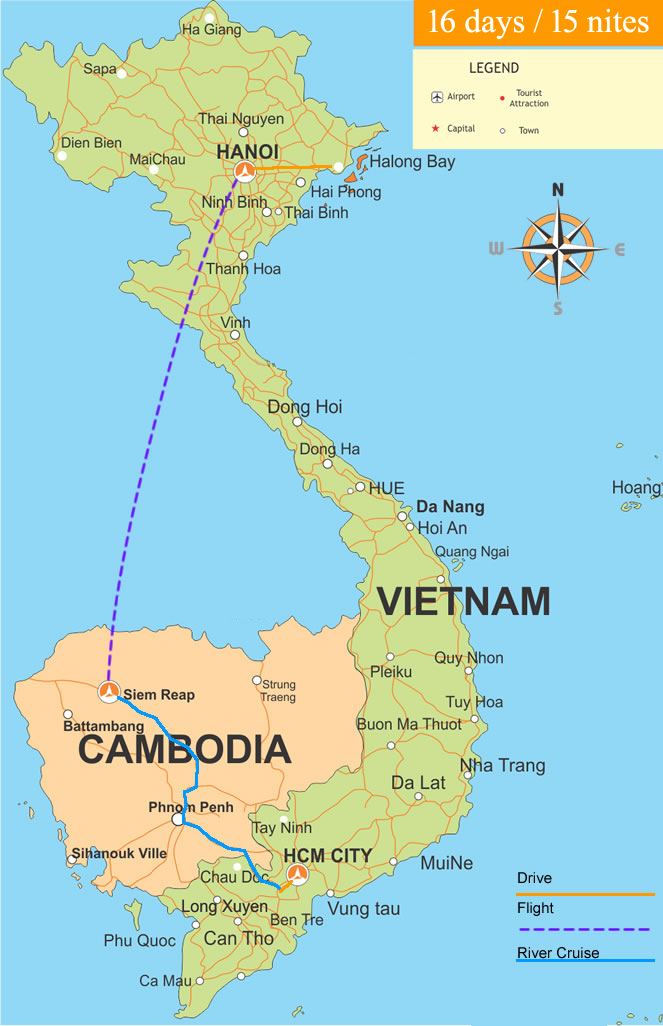 Route: Hanoi , Halong Bay , Siem reap , Phom Penh , Ho Chi Minh city