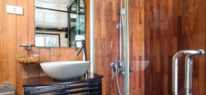 //Private bathroom with hot & cold water, full of toiletries(shampoo, comb, towels).