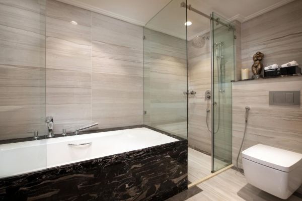 //Private bathroom with hot & cold water, full of toiletries(shampoo, comb, towels).