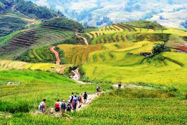9.00 am: After breakfast, you’ll meet with our local guide then hike along local trails and across vegetable gardens and rice terraces on the foothill of FAN SI PAN mountain. The first part will be down hill for about an hour and a half toward Y Linh Ho hamlet.