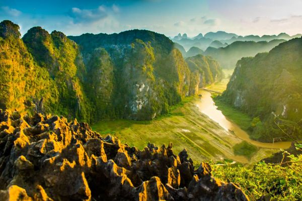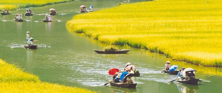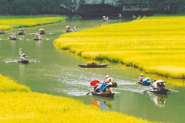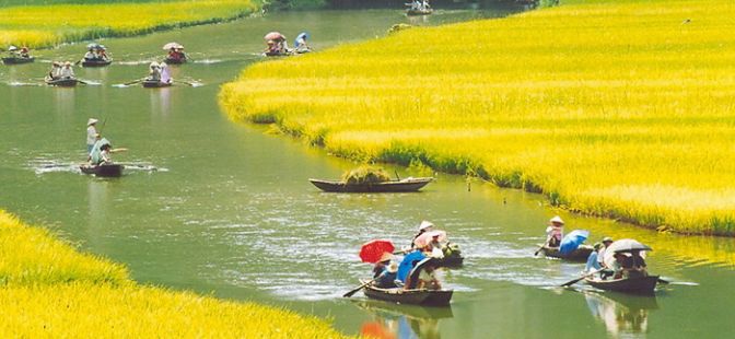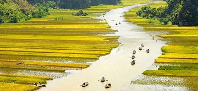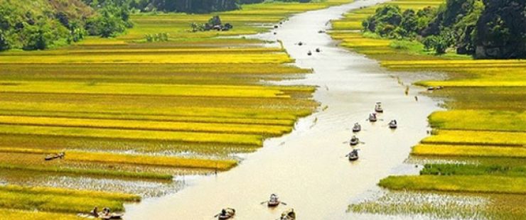 1:30 pm 5 minute-walk to the boat station and start the 2 hours -boat trip to visit Tam Coc. Known as “Halong Bay on land”, Tam Coc are three limestone caves stretching along Ngo Dong river. The boat trip is a nice journey along the river with peaceful scenery of limestone mountains, rice paddy and the site of some temples along the way from Hang Ca (first cave) to Hang Hai (second cave) and Hang Ba (third cave).