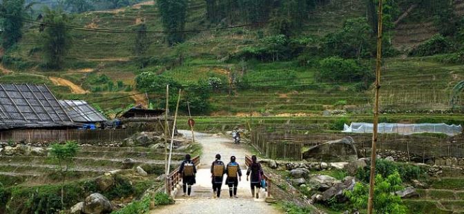9 – 9.30 a.m: Begin trekking from Sapa towards the South East of Sapa along side the beautiful Muong Hoa valley and Terraced Rice Fields in Shin Chai Village , and go to Y Linh Ho and Lao Chai village of the H’Mong minority. 12 p.m: Have picnic lunch in the Black H’Mong house, discover their daily life style and enjoy landscape. 1 p.m: Continue your trekking to Ta Van village of Dzay minority people.