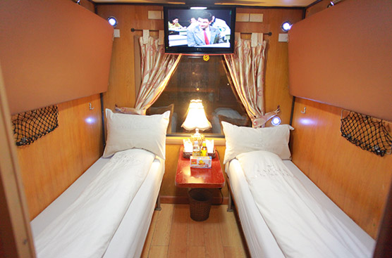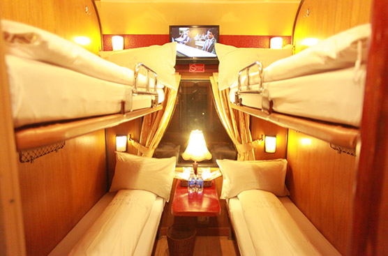 Sapaly Express Train is decorated with stunning and luxurious interior following the European standards. The train has two special carriages including SP3 and SP4. Unlike other trains, each carriage in Sapaly Express has 6 cabins instead of 7 cabins as usual. Therefore, each cabin has more space. There are two cabin types including Deluxe 4 Berths Cabin and VIP 2 Berths Cabin. Deluxe 4 Berths Cabin is pretty suitable for family or a groups of more than two people because of its extensive space and cozy ambience, meanwhile, VIP 2 Berths Cabin is good choice for couples, singles, or those who want to enjoy a private space.